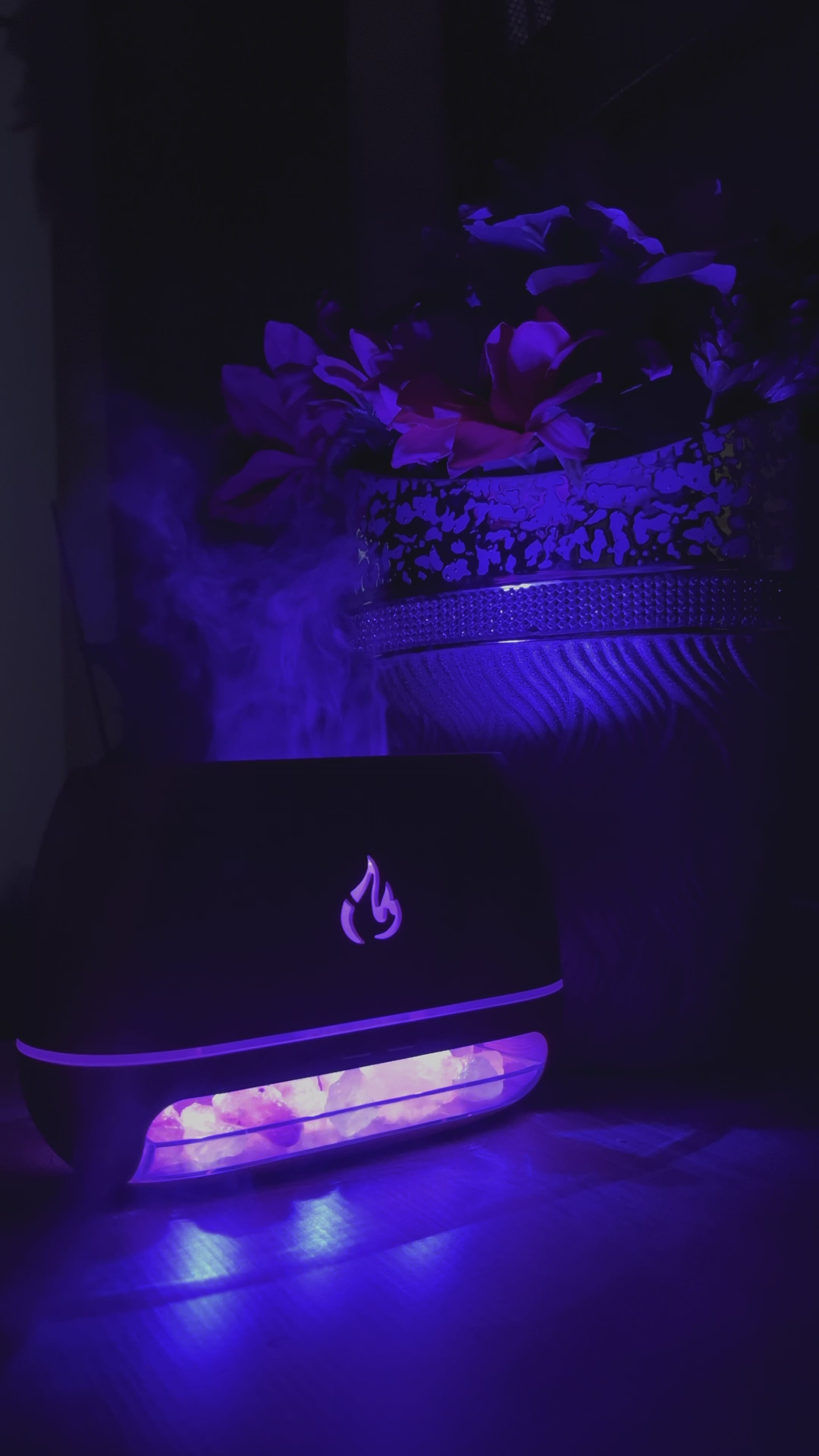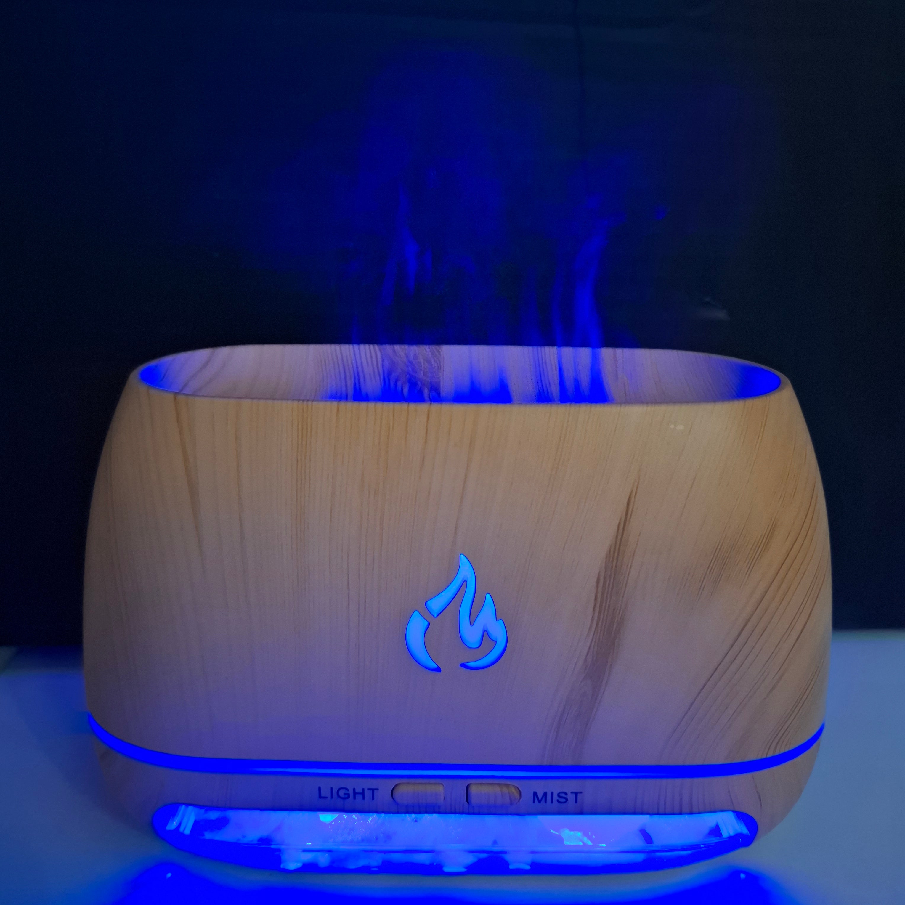Experience the soothing essence of our flame-effect diffuser and essential oils.